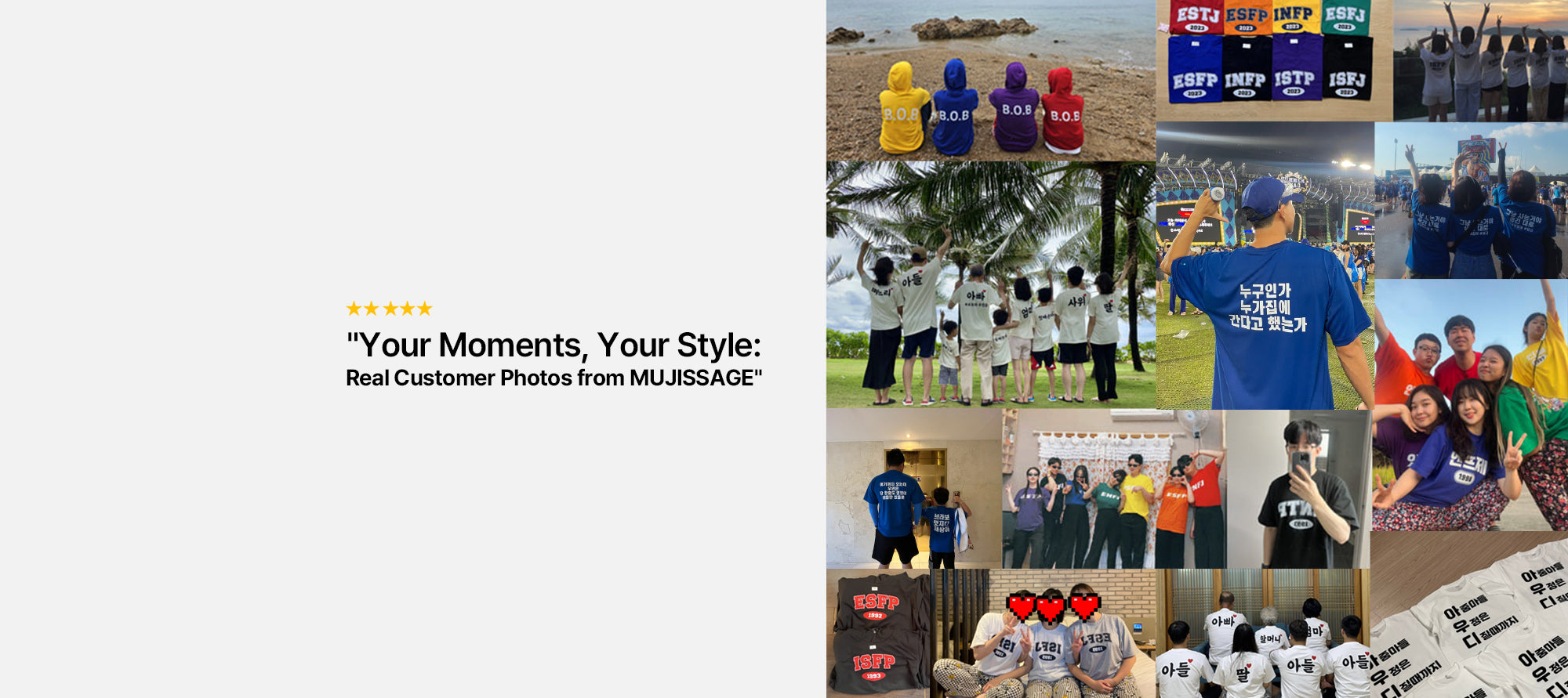 Mujissage is dedicated to creating more than just custom apparel. With over 10 years of experience in South Korea, we specialize in meaningful designs for families, friends, and communities, including worship groups. Our mission is simple: to deliver not only high-quality custom T-shirts but also joy and a sense of connection to everyone who wears them.